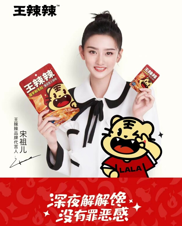 据悉,宋祖儿生肖属虎,并且王辣辣的Logo也是小老虎,因此王辣辣本次以“双虎出没,现场火热”为话题官宣了代言人。据宋祖儿表示:她经常会在工作到深夜时感到饥饿,但作为演员的她为了保持身材又不敢在深夜吃高热量的食物。据王辣辣称,他们的这款魔芋制毛肚“减油减卡”,宋祖儿觉得可以帮她解决宵夜的问题,这也是选择与王辣辣首次合作的原因之一。