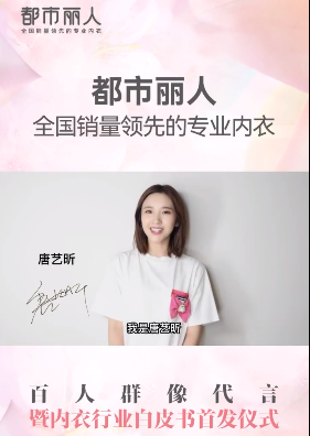 都市丽人百人群像代言暨内衣行业白皮书首发仪式,惊喜来袭!超人气专业演员唐艺昕将于7月3日亲临活动现场,共同见证百人代言团的诞生!