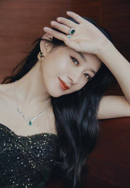 唯美渐变亮片礼服裙亮相,纤腰款款的丽颖佩戴祖母绿项链及耳饰,气场满满又不失优雅,时尚与优雅并举,人气与实力共存。