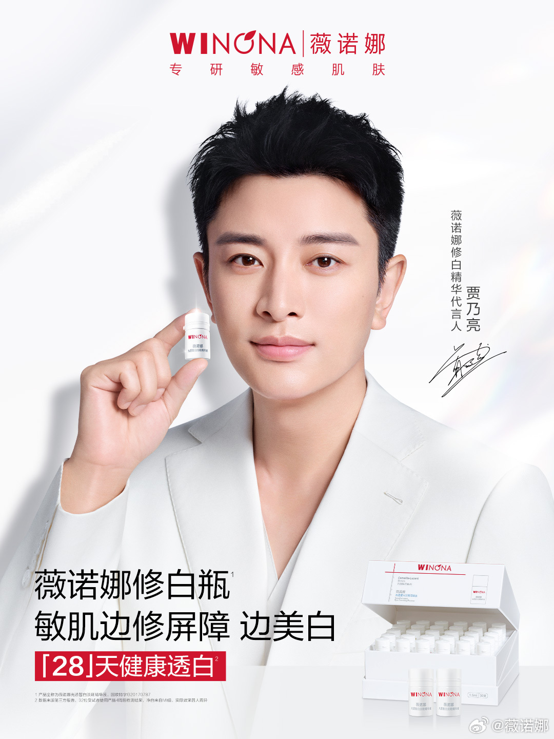 薇诺娜官宣贾乃亮为品牌修白精华代言人