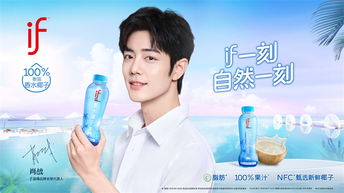 2024年6月11日,中国线上畅销椰子水品牌if官宣肖战(明星代言公司)正式加入if大家庭,成为其全球品牌代言人,并推出一系列椰子饮品,包括if100%椰子水、if香水椰子水、if椰奶(芒果糯米味、原味、巧克力口味)。此次合作不仅彰显了肖战在全球范围内的非凡影响力,也标志着if品牌在全球市场战略中的又一里程碑式迈进。