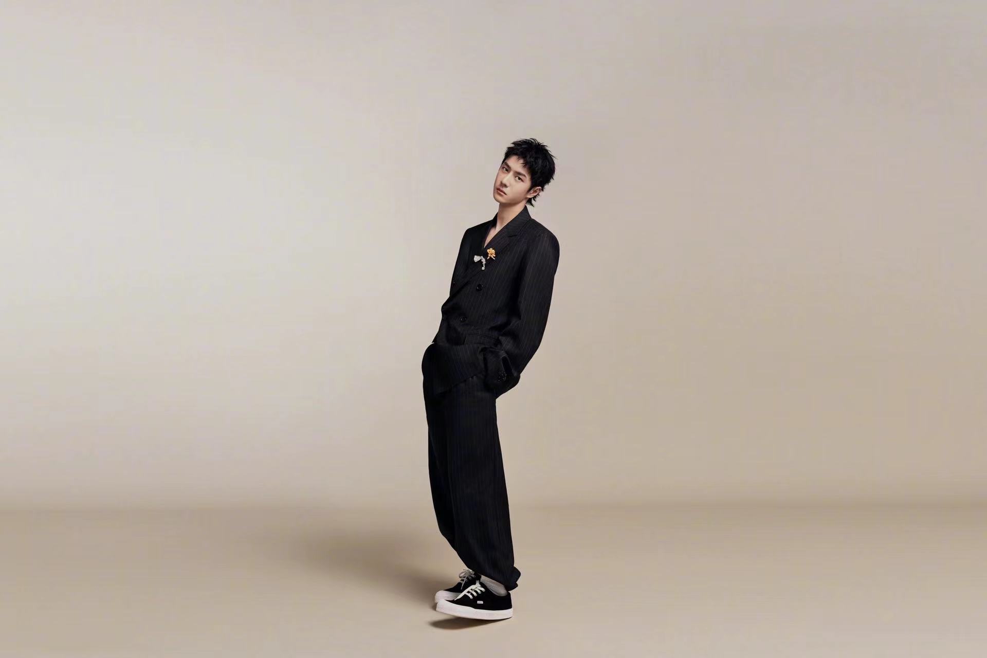 在 2025 春夏男装秀开幕前夕,LOEWE 官宣王一博(明星代言公司)为全球品牌代言人。在官宣大片中,王一博置身于米色背景前,身穿条纹西装及格纹衬衫,尽显轻松、自在型格。