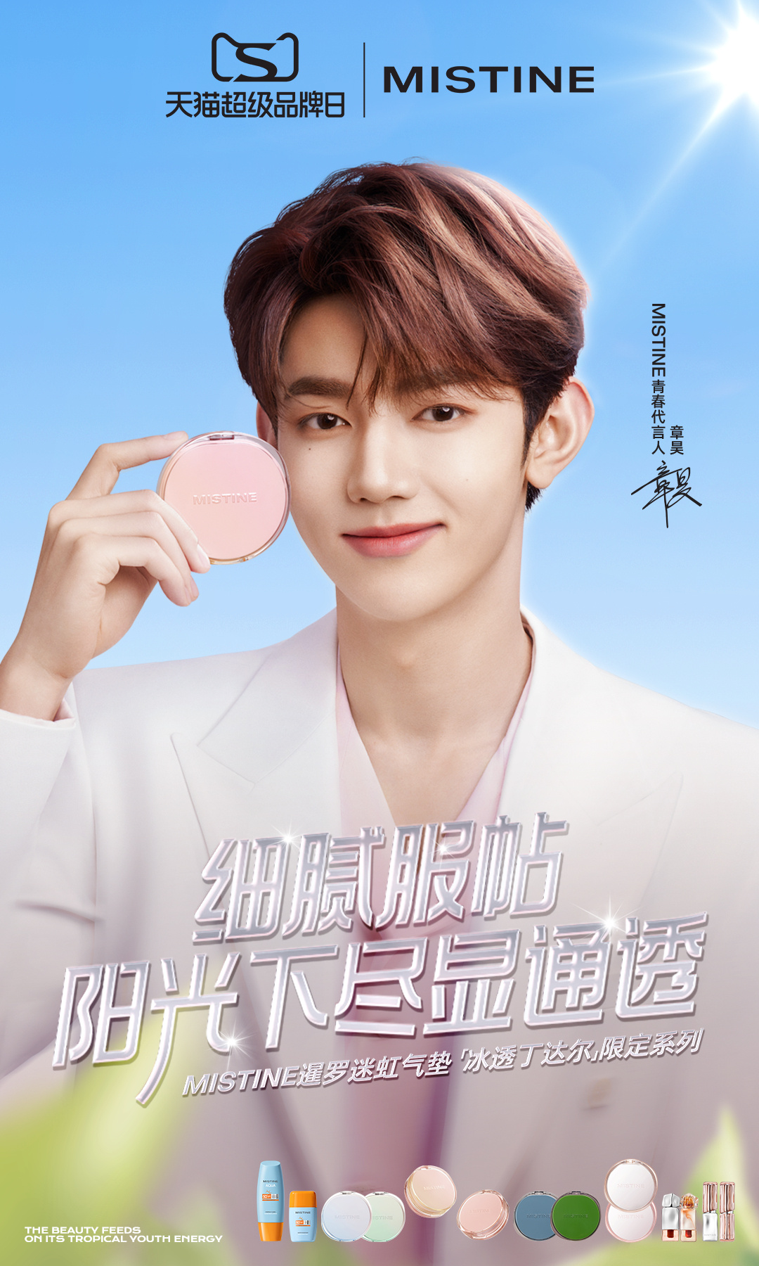 夏日正当时,MISTINE 蜜丝婷推出新品 MISTINE 暹罗迷虹气垫,并官宣艺人章昊(明星代言公司)为 MISTINE 青春代言人,共同开启细腻服帖、阳光清爽的夏日妆容体验。