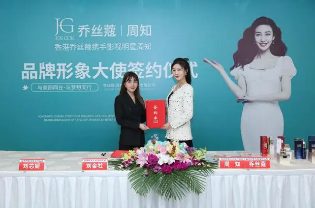 近日,乔丝蔻与影视明星周知(明星代言公司)在北京举办了品牌形象大使签约仪式。