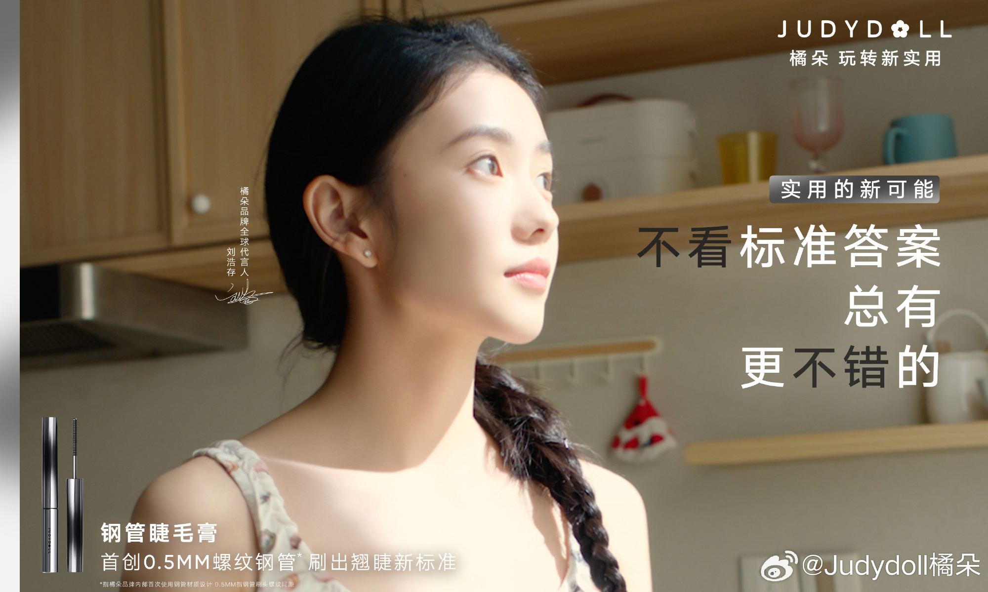 橘朵官宣新生代小花女演员刘浩存(明星经纪公司)为全球品牌代言人,并释出「玩转新实用」全新品牌理念。在代言人演绎的全新大片中,品牌再现了三个生活中的常见场景——时间来不及怎么一次搞定所有底妆?产品有限如何画出不同妆容?怎么在平常的生活中玩出新意?并巧妙引出「钢管睫毛膏」「六合一防晒素颜霜」「玩趣七色盘」三个品牌新品解决以上问题,鼓励大家积极拓展品牌产品的使用场景和用法,把有点意思的生活灵感,变成有点东西的玩妆可能。