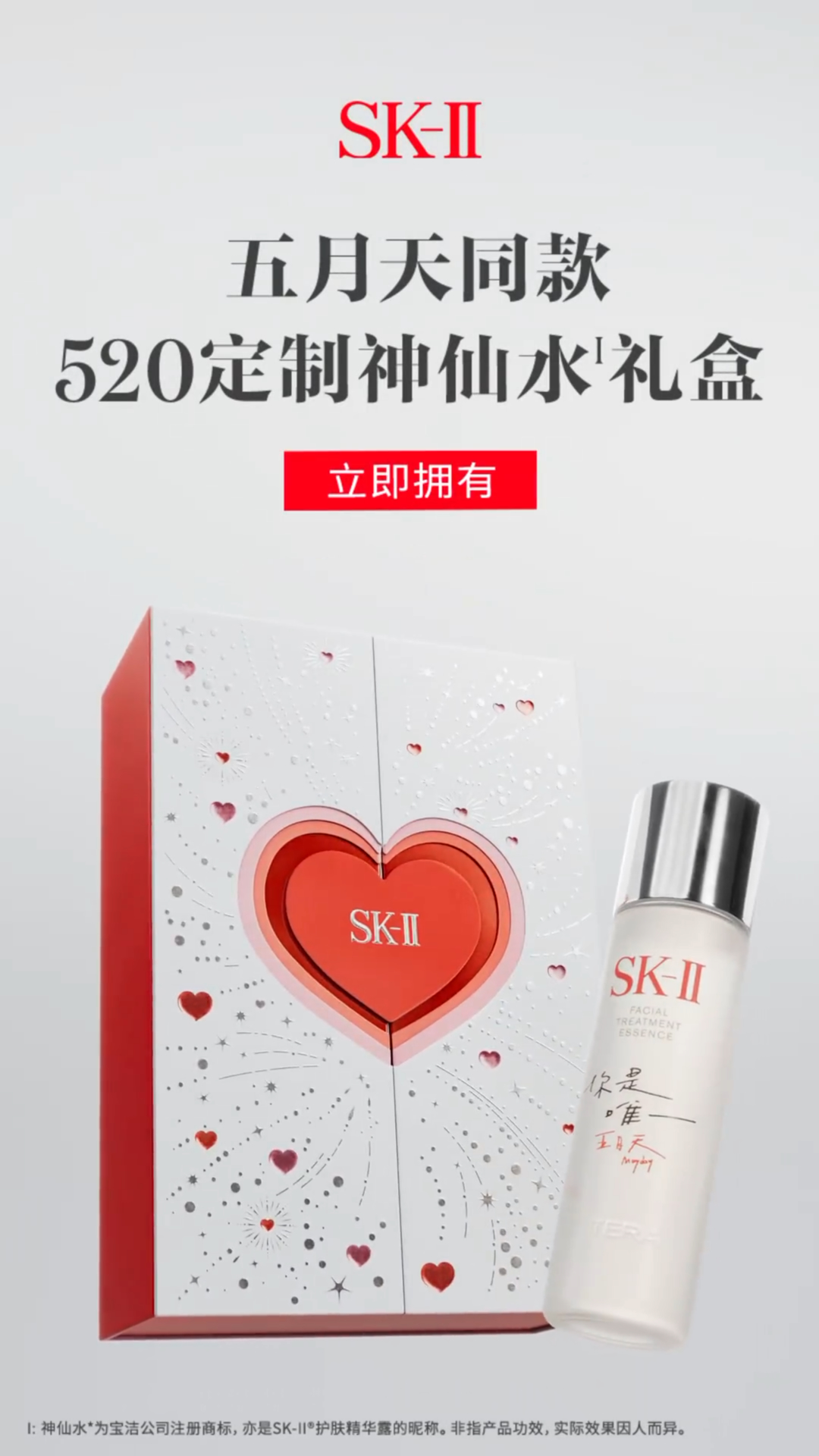 五月是说「爱你」最适合的季节。5 月 8 日,SK-II 官宣五月天为品牌代言人,青春故事的书写离不开五月天的陪伴,SK-II 将携手品牌代言人五月天一起,见证、陪伴每一个爱与心动的瞬间。与此同时,在 520 来临之际,SK-II 携手五月天特别推出 520 定制神仙水礼盒,助力每一次惊喜告白。