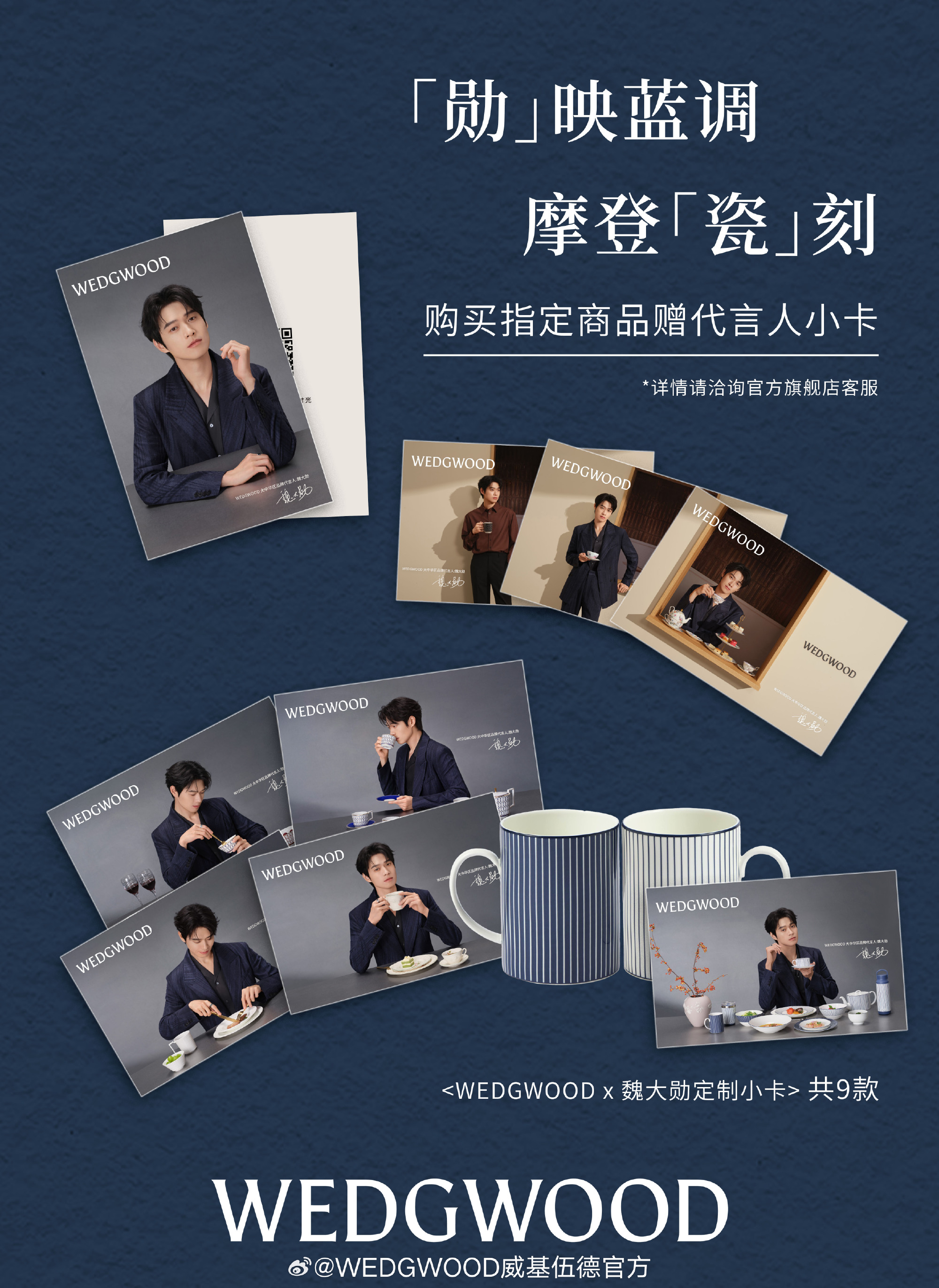 「勋」映蓝调,摩登「瓷」刻。5 月 28 日,WEDGWOOD 威基伍德官宣演员魏大勋为大中华区品牌代言人。品牌方认为工作上他不惧挑战、表演中他不断突破生活里他细腻温润,这些从容优雅的气质与摩登格调,能够完美诠释 WEDGWOOD 经典与现代交融的生活艺术美学。当传世匠心凝于器皿,优雅格调将沁润日常。