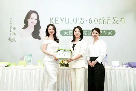 谢秋玉女士现场致辞,珂语品牌将依托董璇严谨专业又具亲和力的公众形象,通过多元化新媒体渠道深耕内容传播,以“天然草本+科学修护”为共识开拓健康祛痘新赛道。作为品牌形象大使,董璇现场试用即将面市的 6.0 新品,直言其质地水润好吸收,安全温和不刺激,以真实体验印证产品在肤感与安全性上的突破,为新品上市注入信任背书。