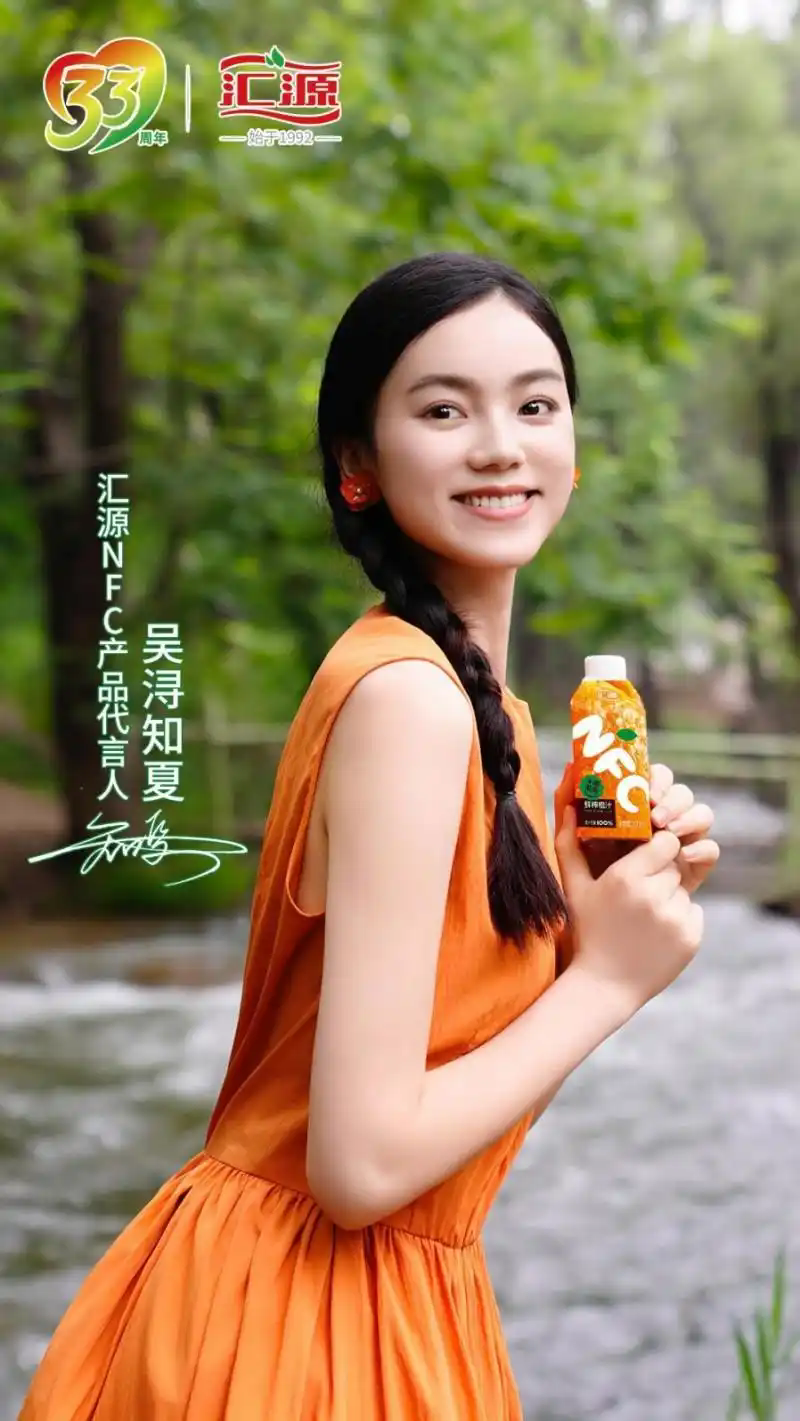 出生于2004年的吴浔知夏,形象阳光亲和、气质清新自然,现就读于贵州大学。她不仅在表演方面颇具天赋,还热爱舞蹈、马术等。她的形象及气质,与汇源NFC系列果汁所倡导的健康、活力、自然的理念十分契合。她表示:“很高兴能够成为汇源NFC产品广告片的主角并为之代言,这一系列产品让我感受到了阳光、自然的味道,我自己非常喜欢,也希望能通过我,将这份健康与美味带给更多人”。