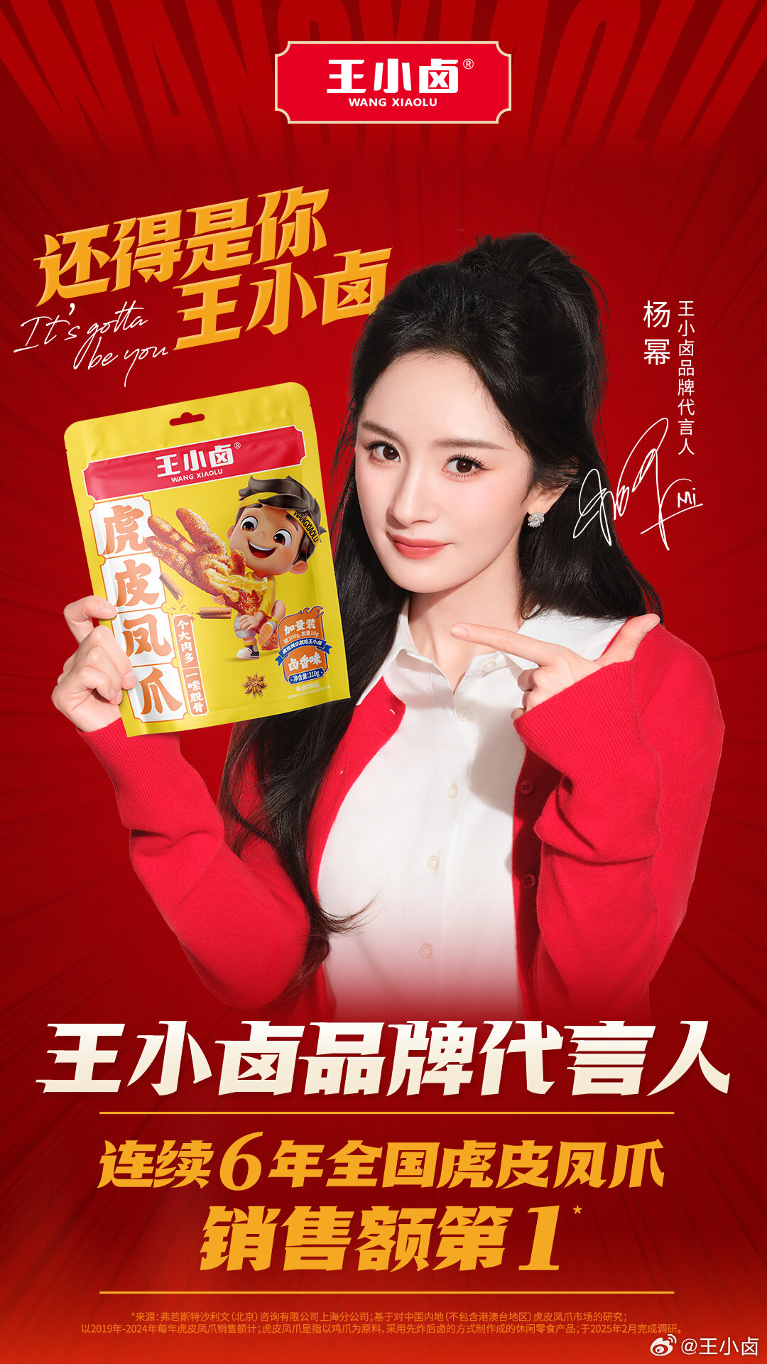 杨幂(明星代言公司)又带着她的洗脑广告来了!8 月 20 日,王小卤正式官宣杨幂成为首位品牌代言人,邀请大家和杨幂一起,带上王小卤虎皮凤爪一起打开「美味幂籍」。