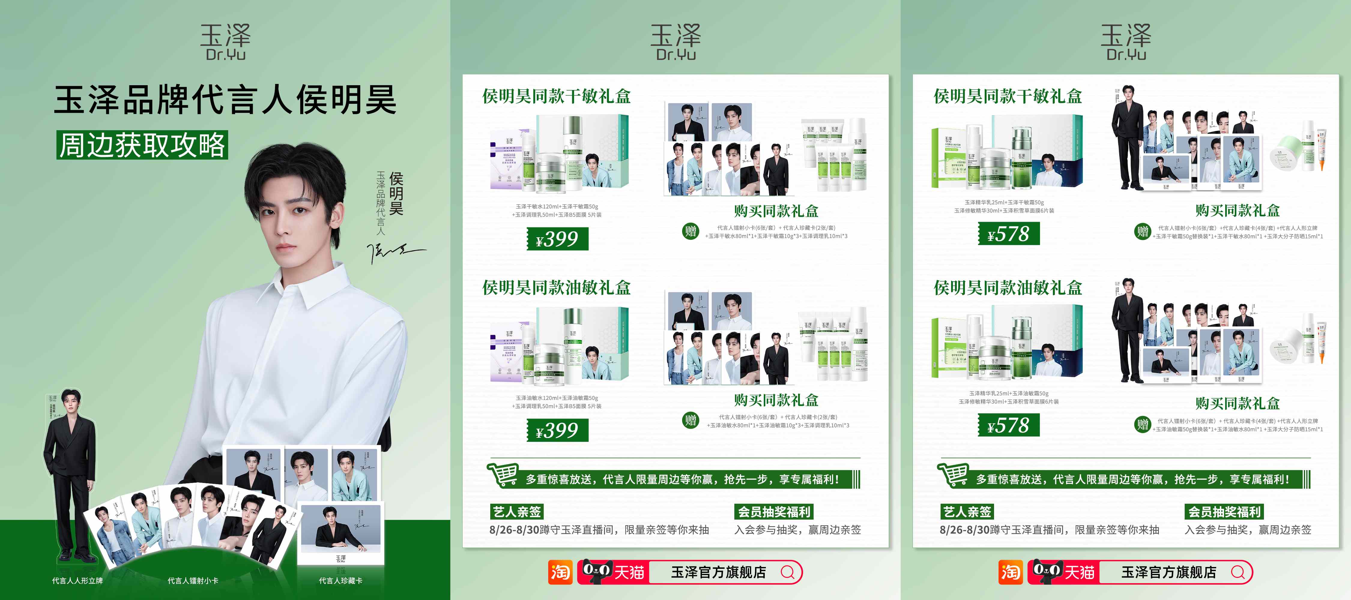近日,玉泽官宣侯明昊(明星代言公司)成为品牌代言人,双方携手推出「侯明昊限定礼盒」并开启天猫小黑盒新品日活动,邀请粉丝一同见证「玉泽干敏霜」的修护实力。