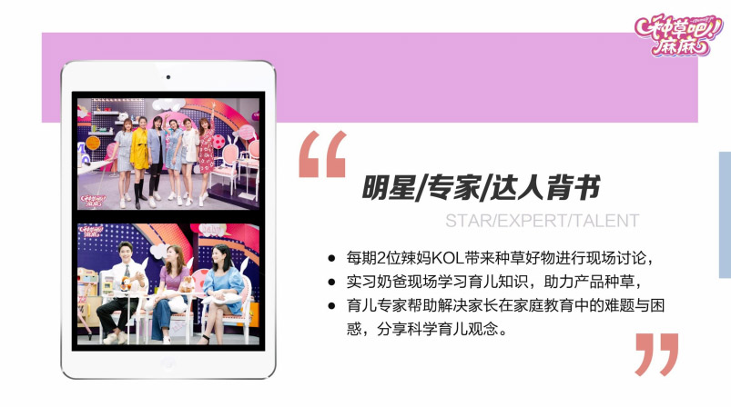 《种草吧麻麻》由王小牙团队全新重磅打造,是一档以妈妈为核心的明星家庭生活种草分享类节目。