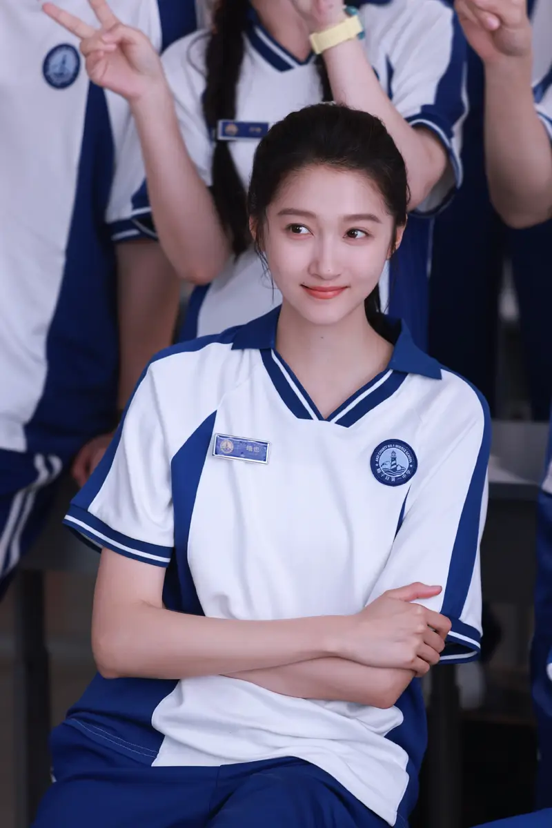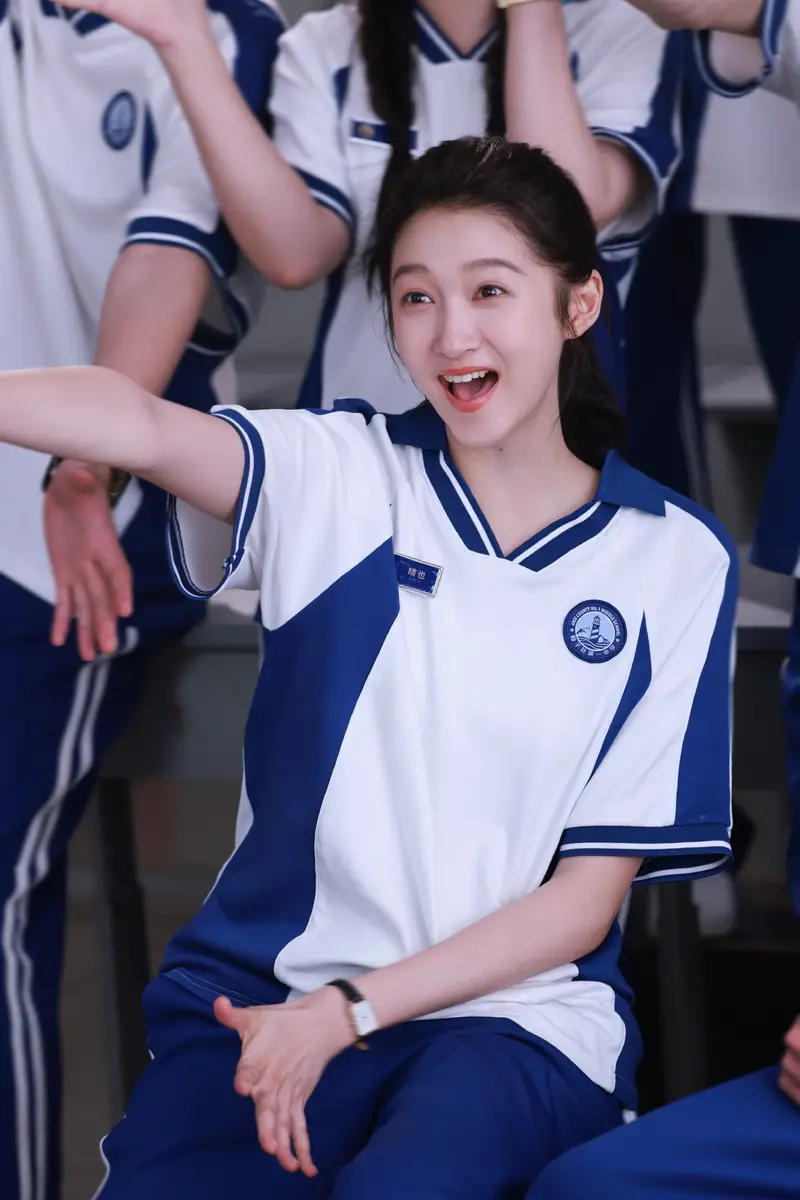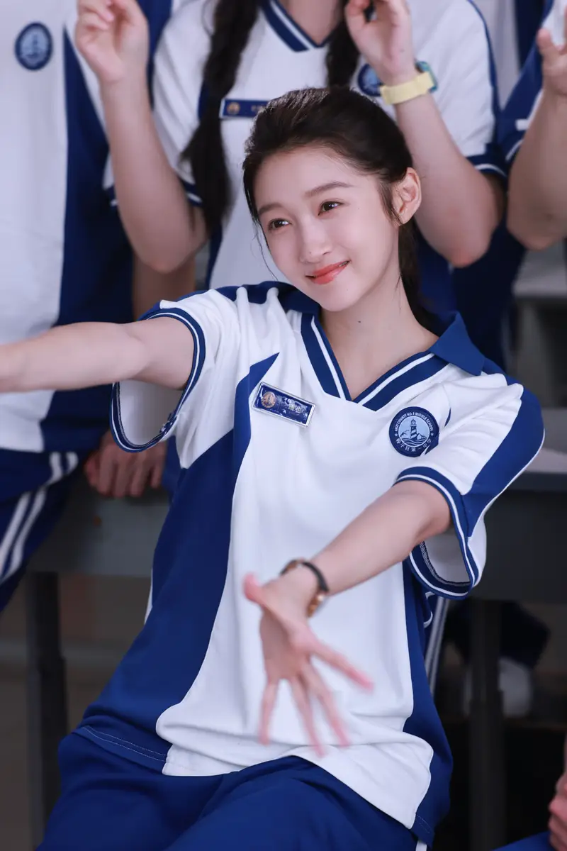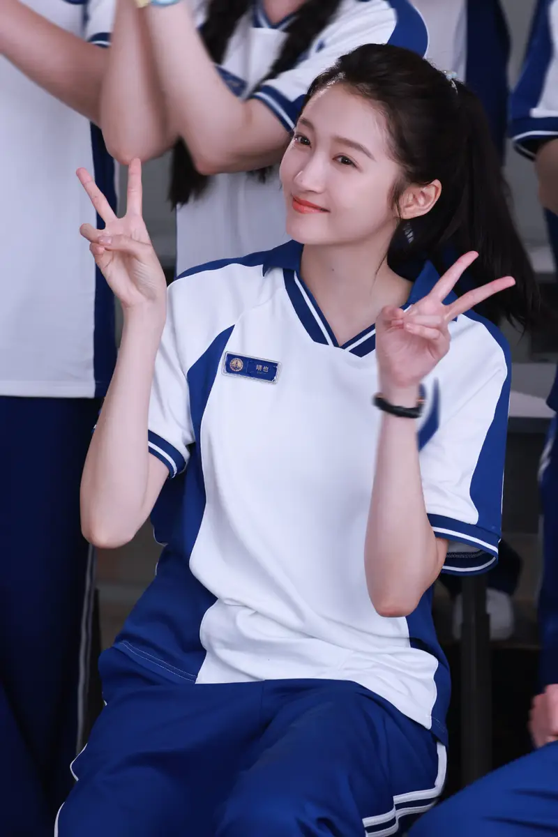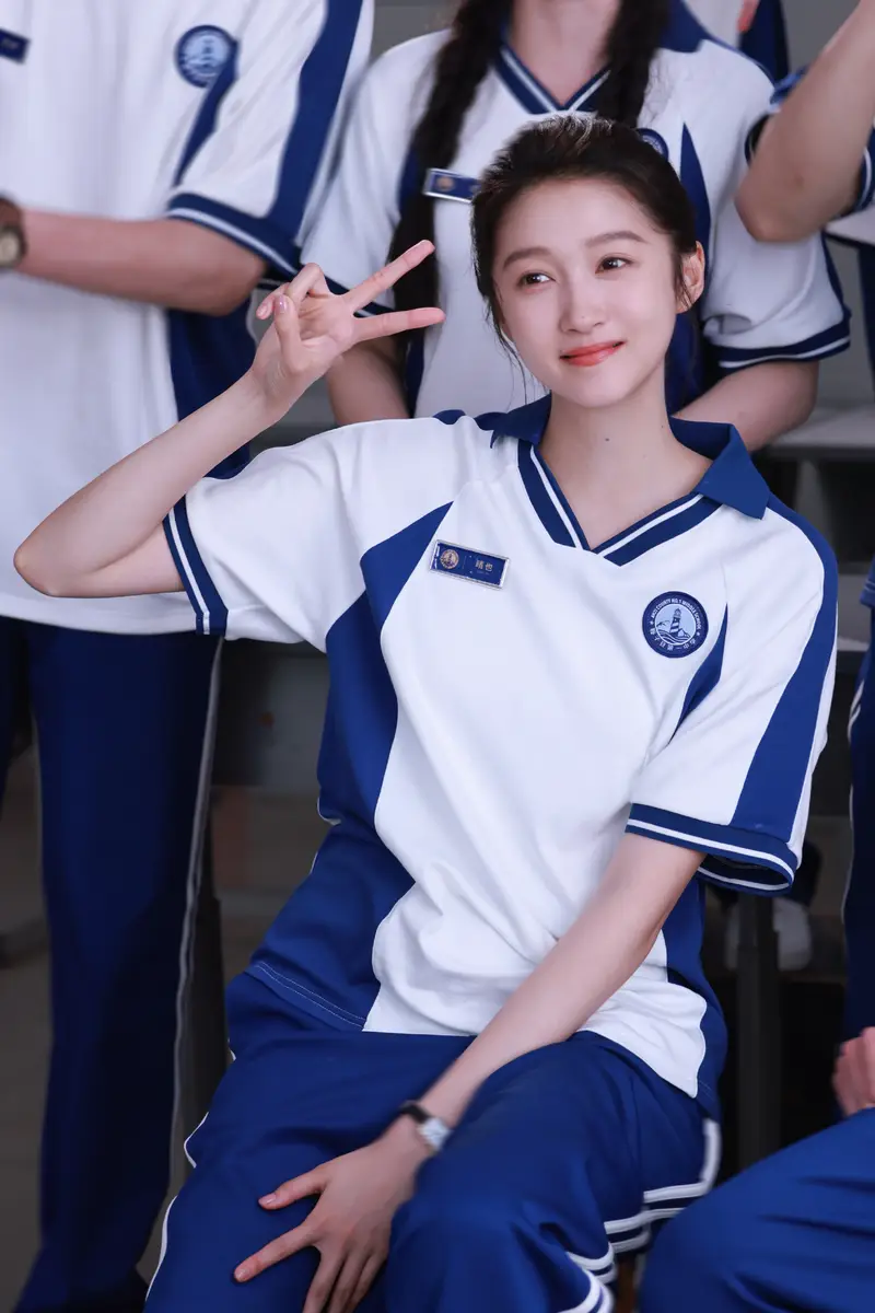 关晓彤穿蓝白色校服开心比耶!秒变高中清纯校花超养眼