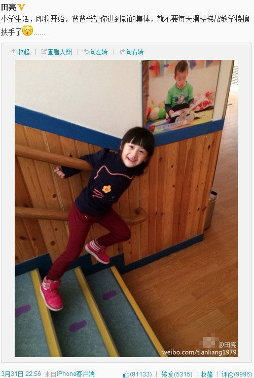 田亮称cindy将上小学,调侃不要帮学校“擦扶手”