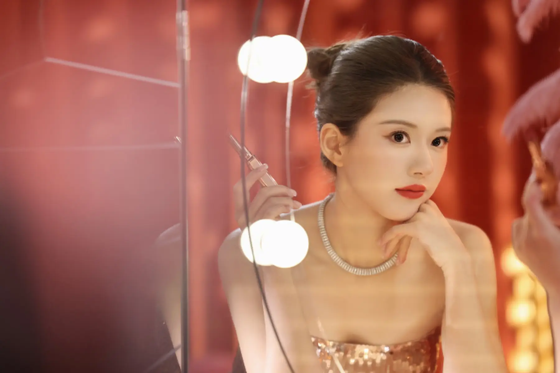 赵露思身穿抹胸亮片礼服搭配高盘发造型 身材曼妙千金感十足