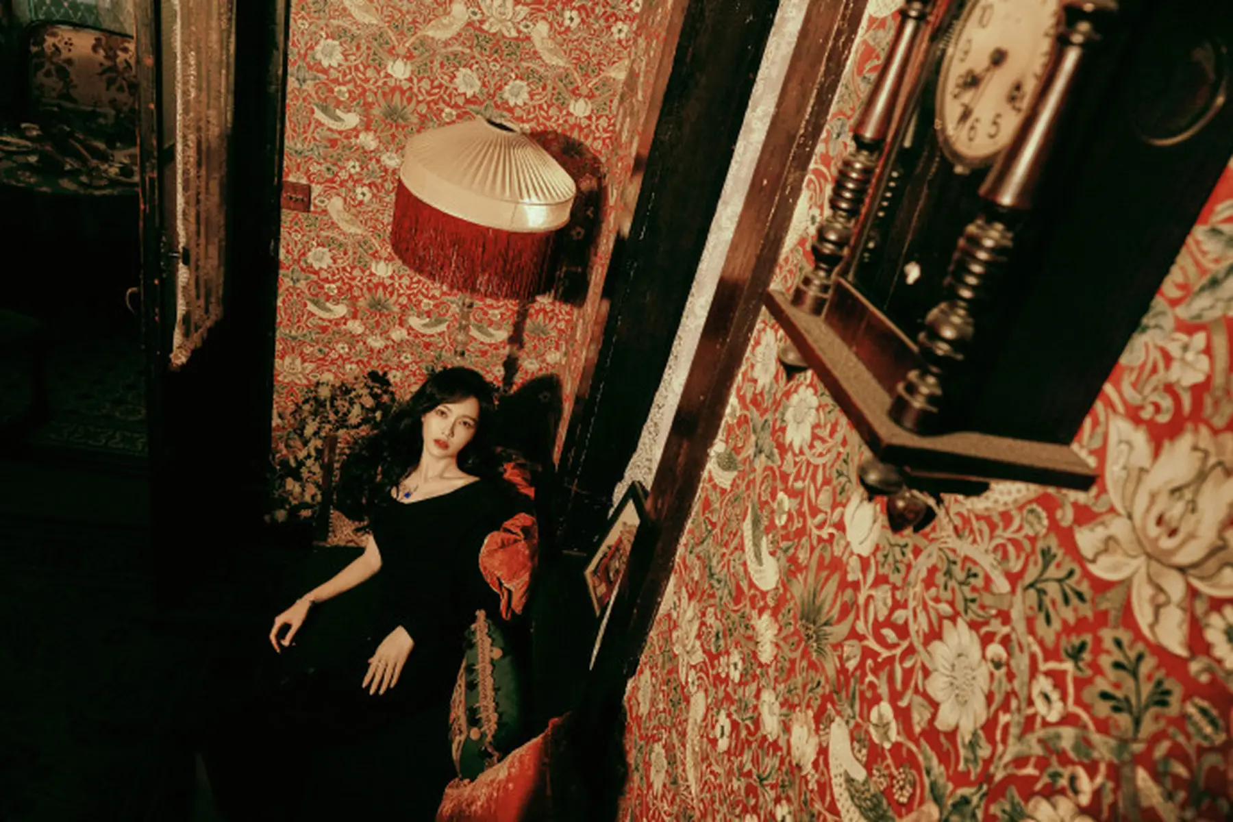 唐嫣化身复古美人我见犹怜 黑裙搭配金发红唇明艳动人