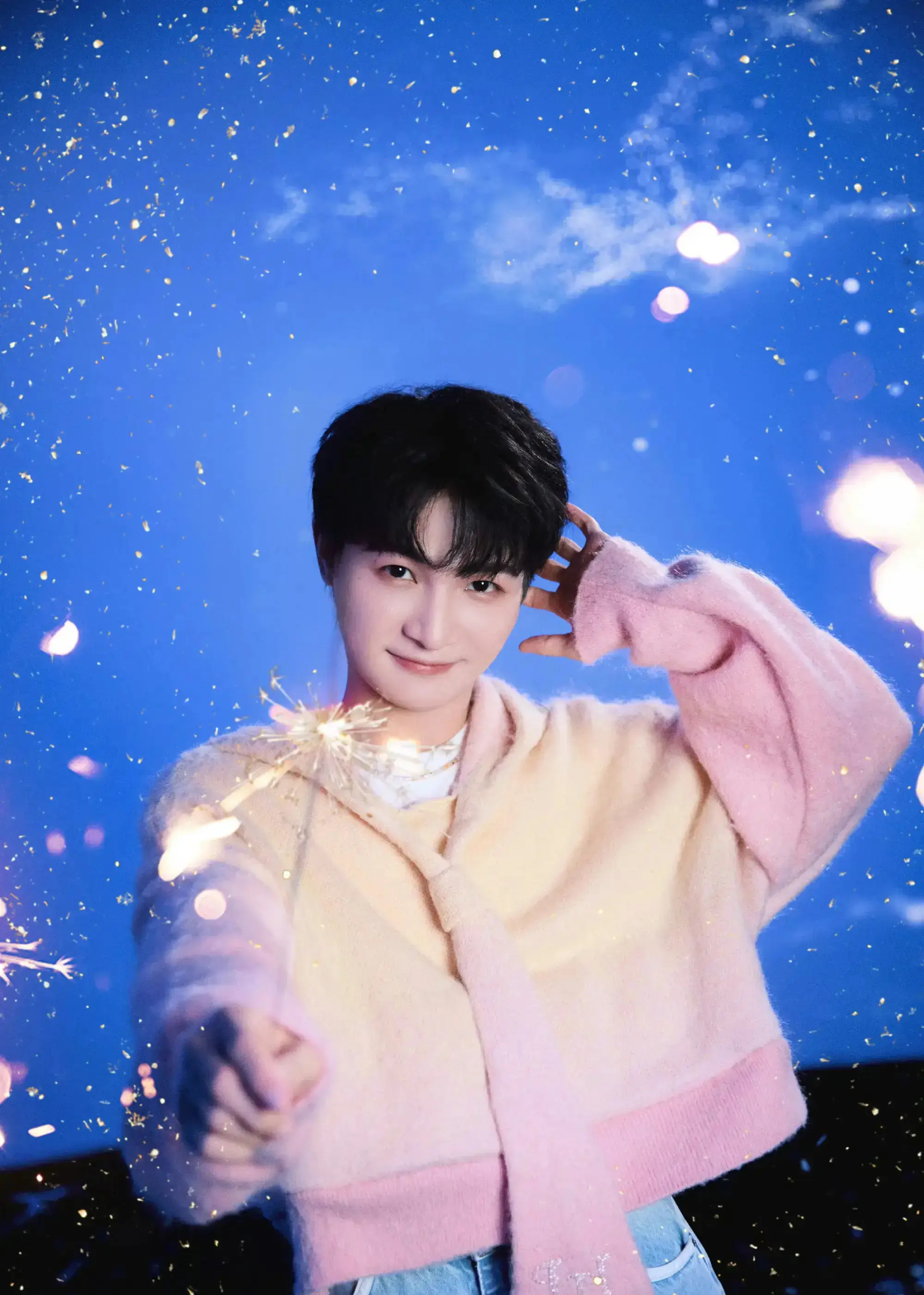 王子文穿红高领毛衣明媚鲜活 捧蛋糕戴星星装饰元气甜美