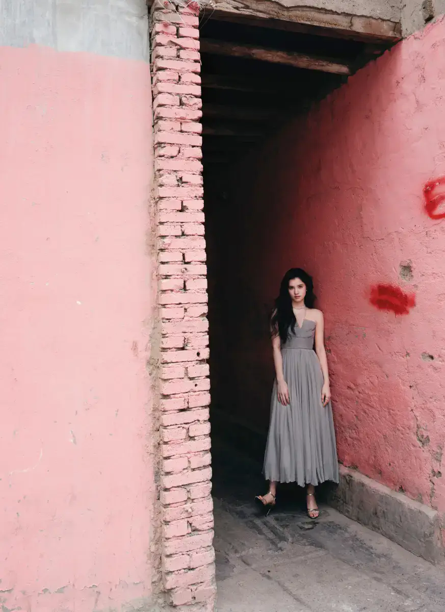 张婧仪漫步小巷。