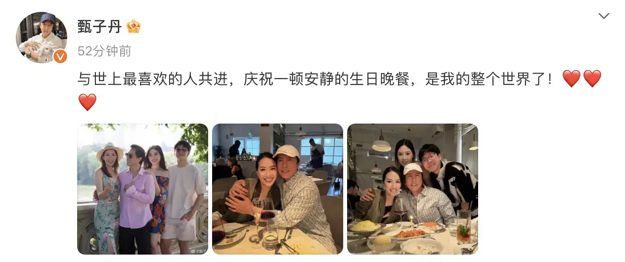 甄子丹晒一家人庆生合照 和妻子拥抱幸福甜蜜