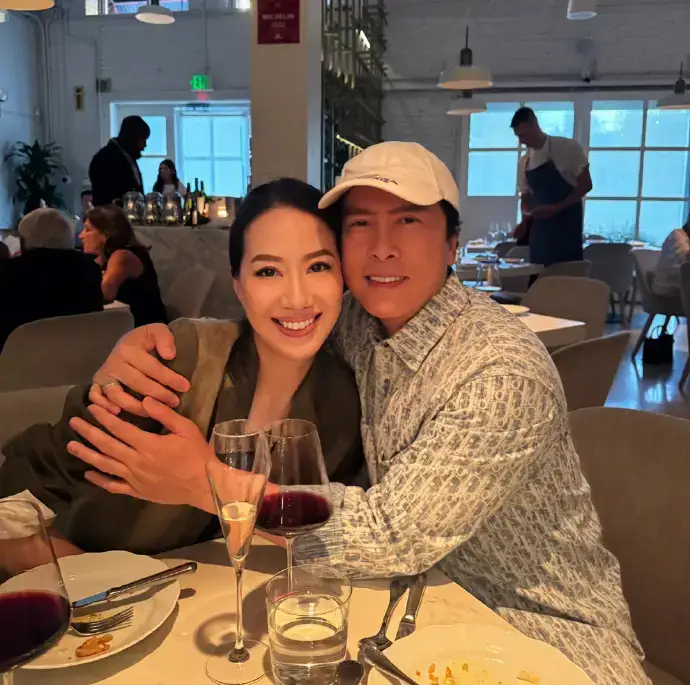 7月29日,著名动作演员甄子丹(明星经纪公司)晒出和家人庆生的照片,他面带笑容,和妻子拥抱很幸福。