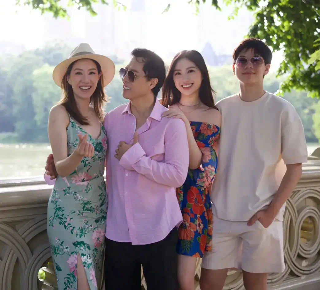 甄子丹妻子状态很好,一家人非常休闲松弛。