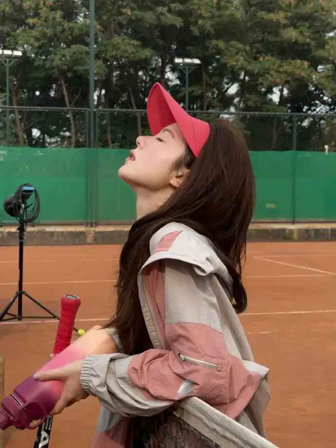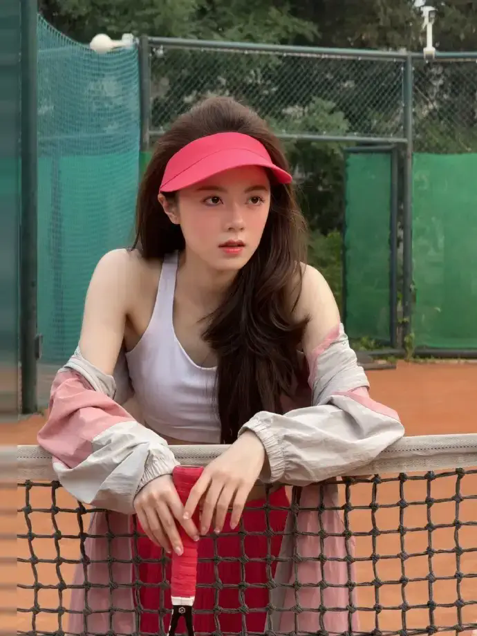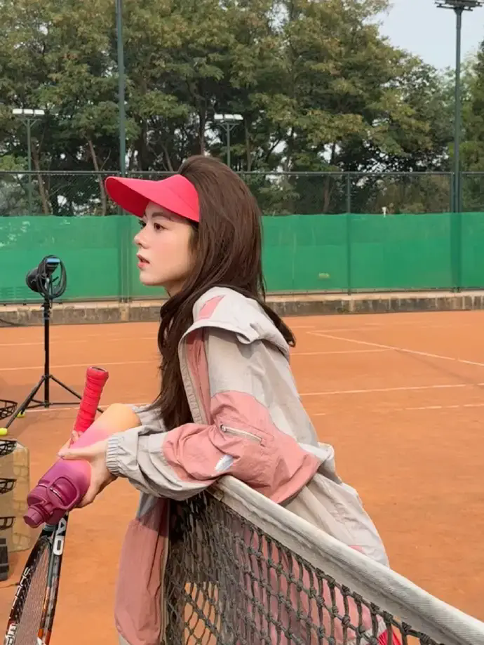 赵今麦打网球运动感十足 戴粉色遮阳帽活力四射