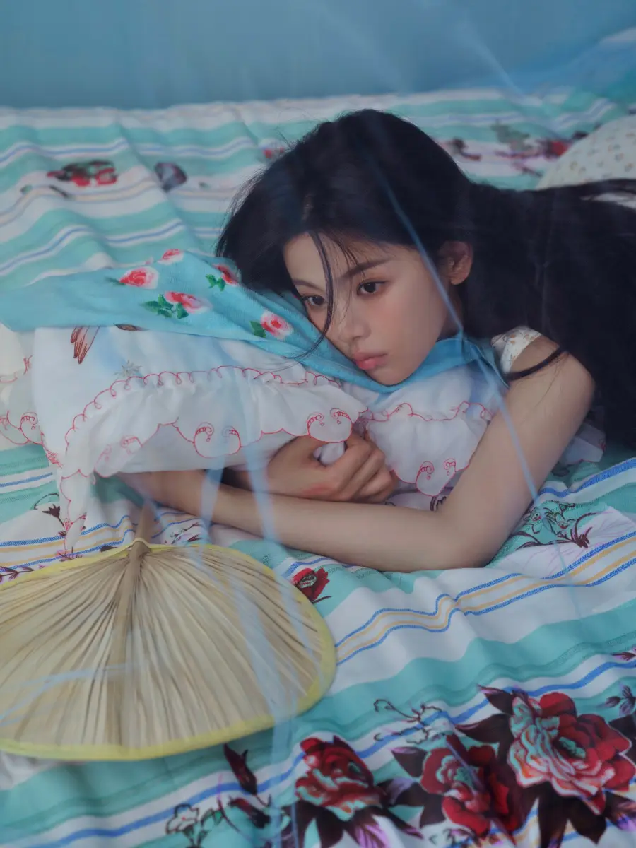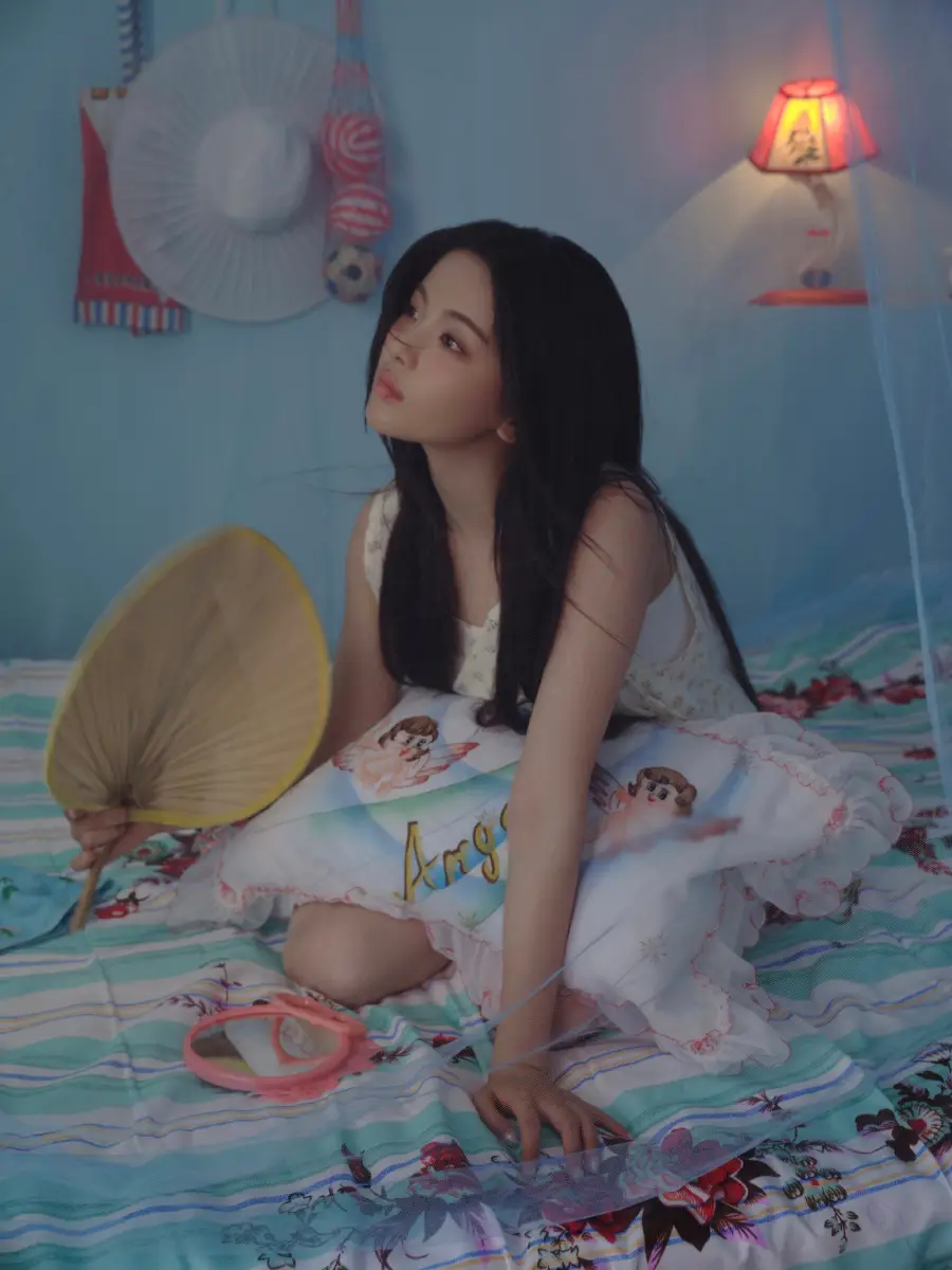 杨超越摇着蒲扇,感受微风的清凉。