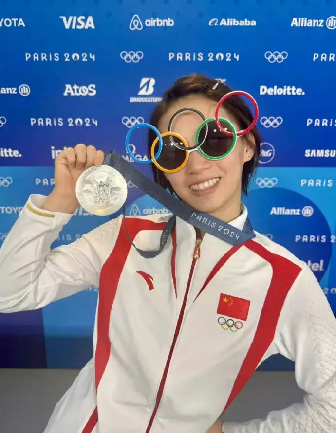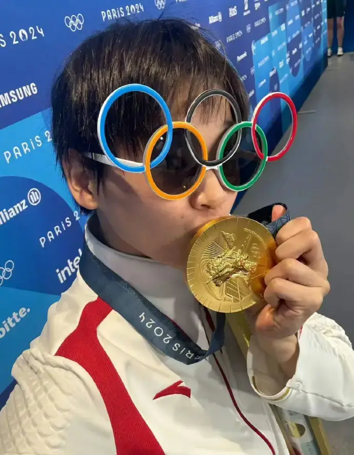 全红婵陈芋汐举奖牌搞怪自拍 戴五环墨镜调皮可爱