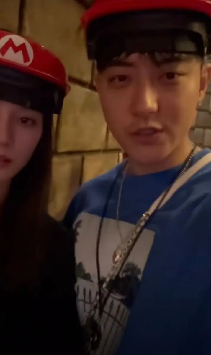 黄子韬和徐艺洋带马里奥情侣帽。