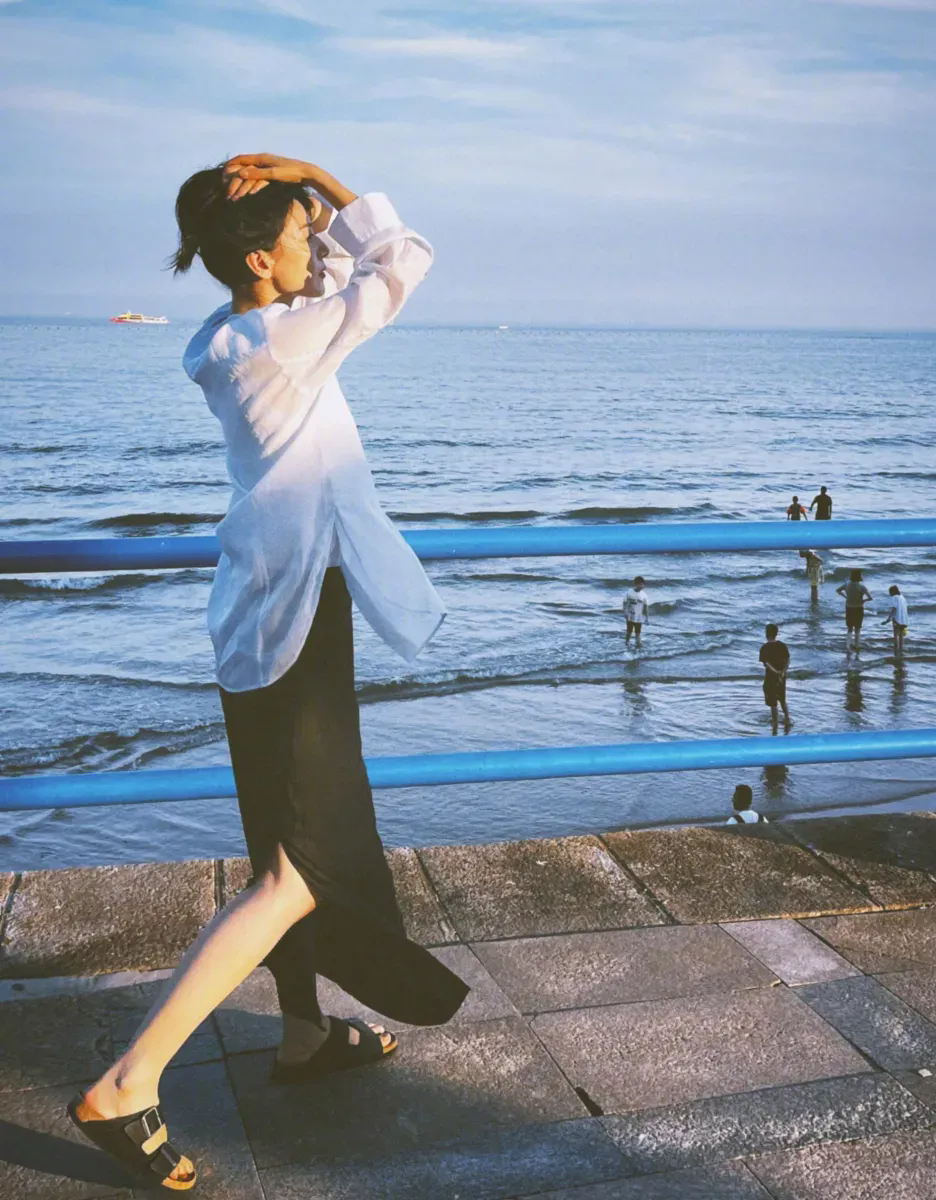 8月15日,高圆圆(明星经纪公司)晒出一组夏末写真美图。她身穿白色衬衫外套,内搭黑裙,漫步海滨,氛围感拉满。