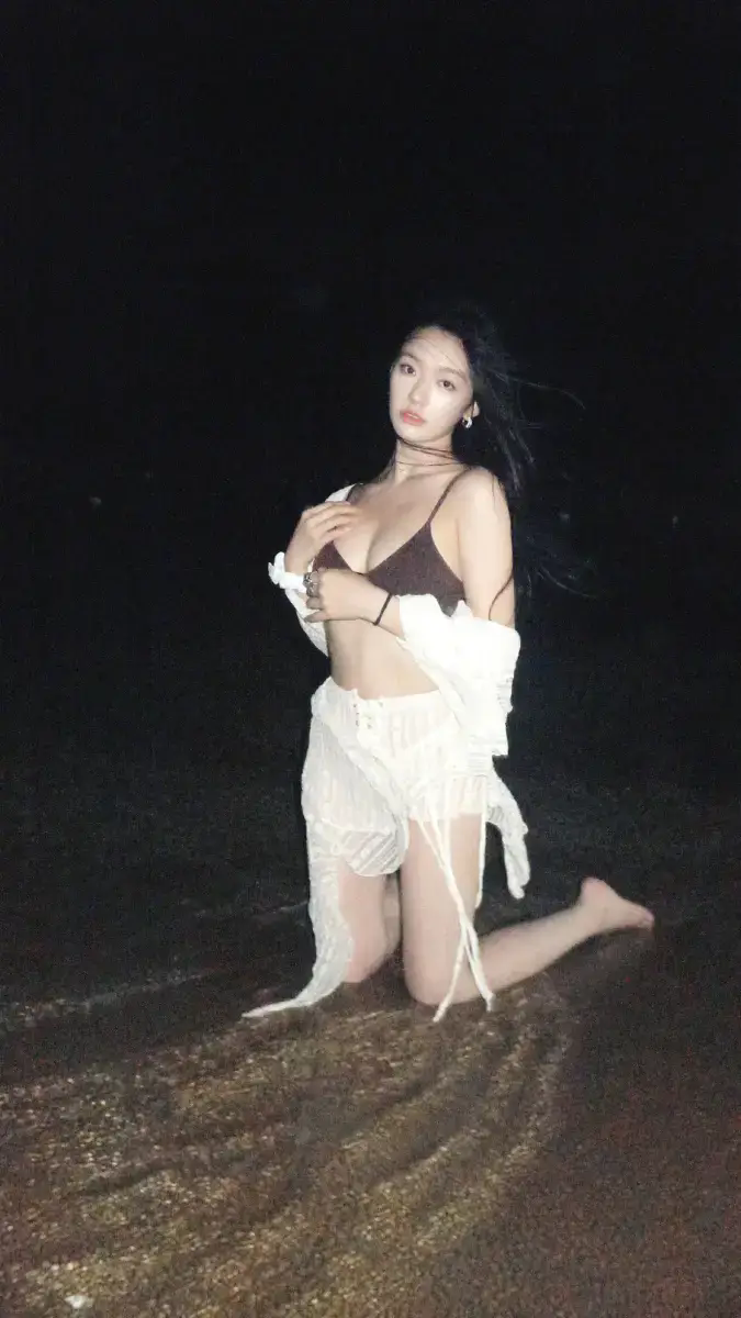 近日,林允(明星经纪公司)在个人社交账号晒出了一组海边泳装随拍。