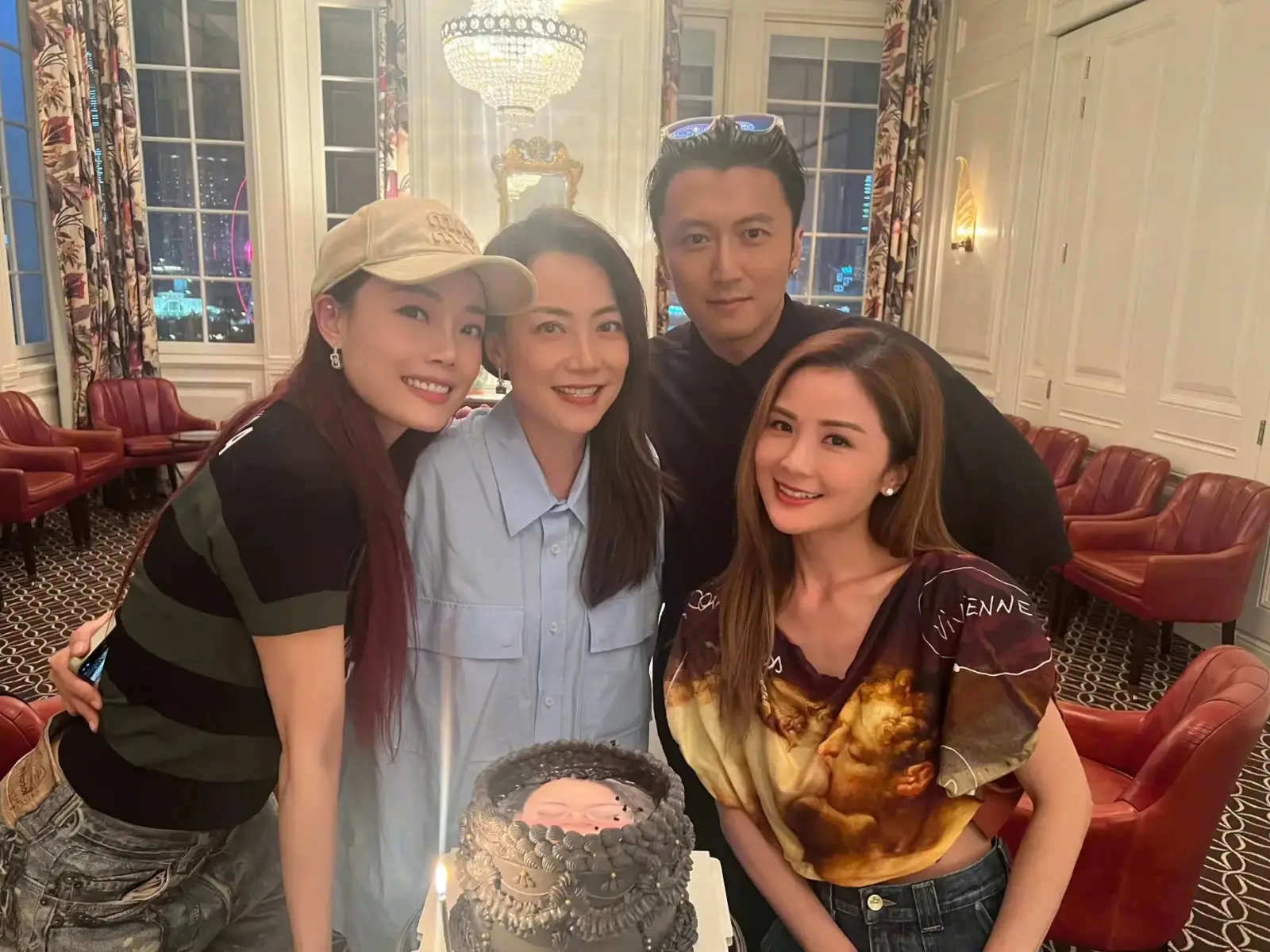 8月20日,霍汶希晒出与谢霆锋容祖儿阿Sa的合照,几人为霍汶希补过生日,精心准备了蛋糕。