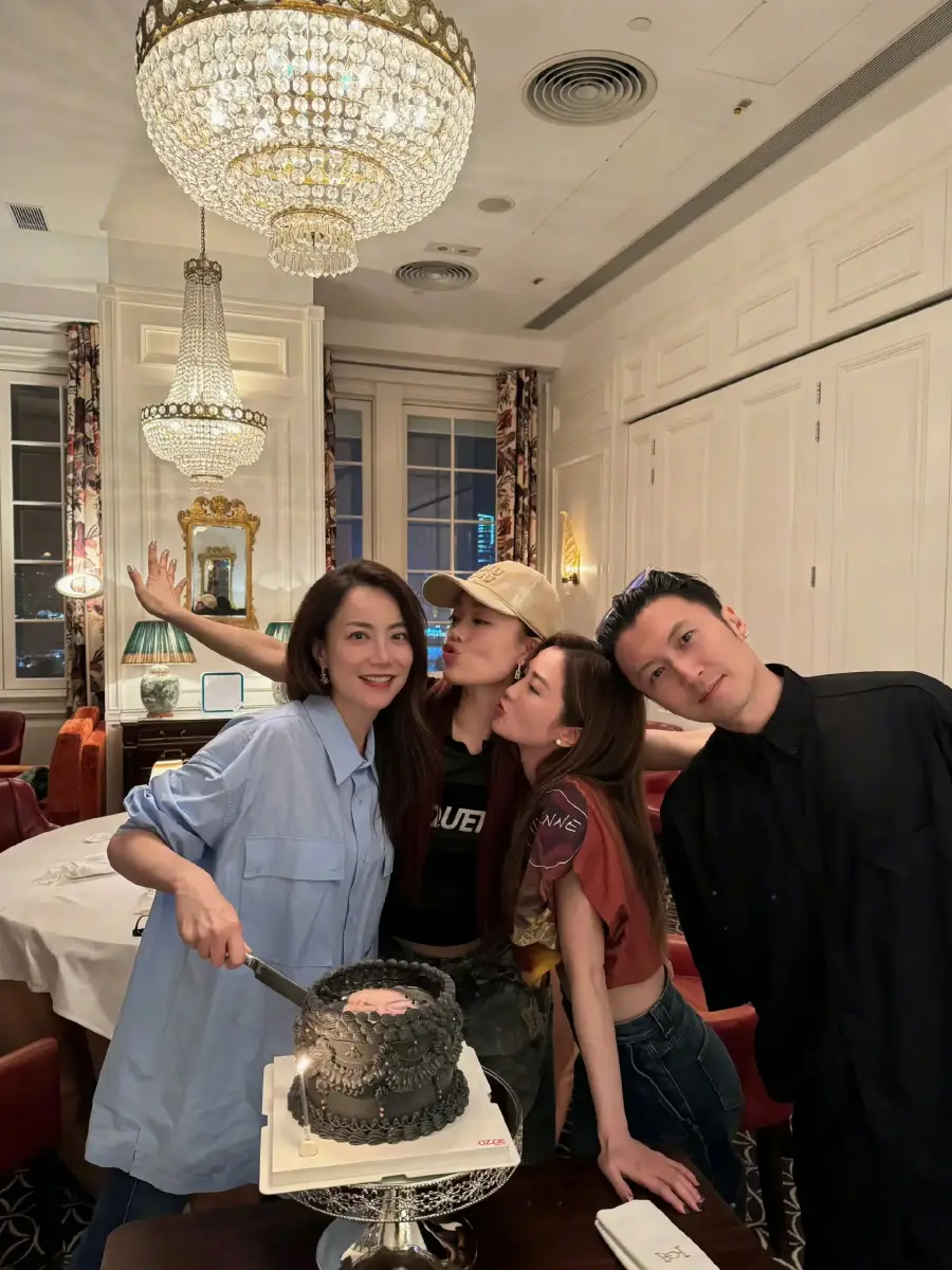 容祖儿、阿Sa与霍汶希贴脸亲亲,关系亲密。