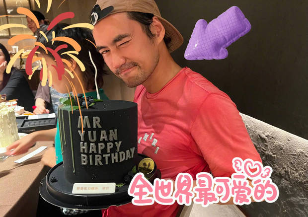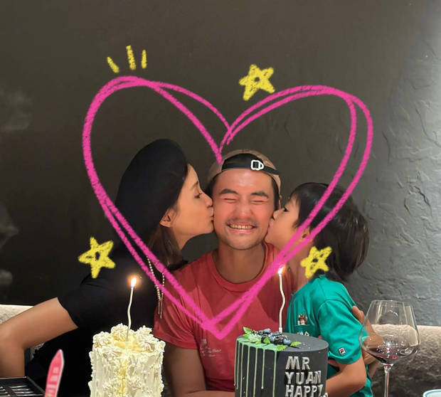此前,袁弘与儿子一起为张歆艺庆祝生日。