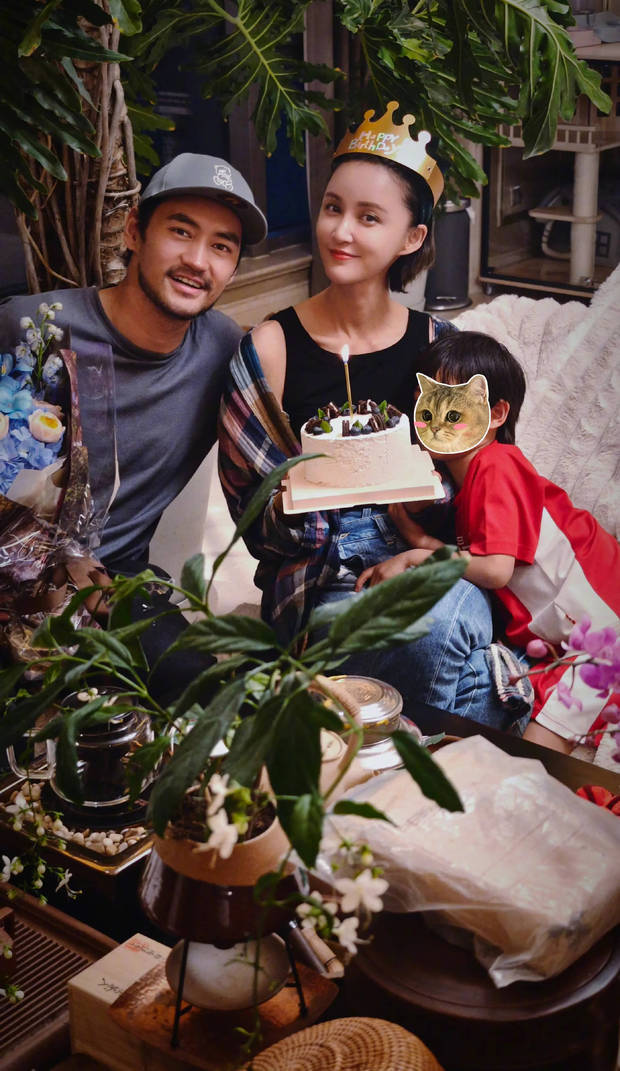 8月23日,袁弘(明星经纪公司)在社交平台上晒出张歆艺与儿子为自己庆生的全家福照,好幸福的一家三口!