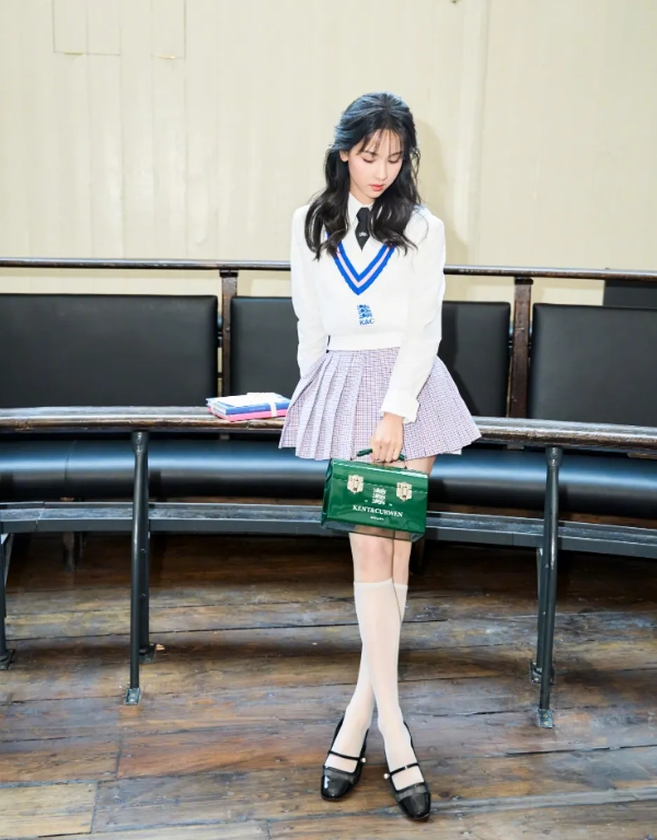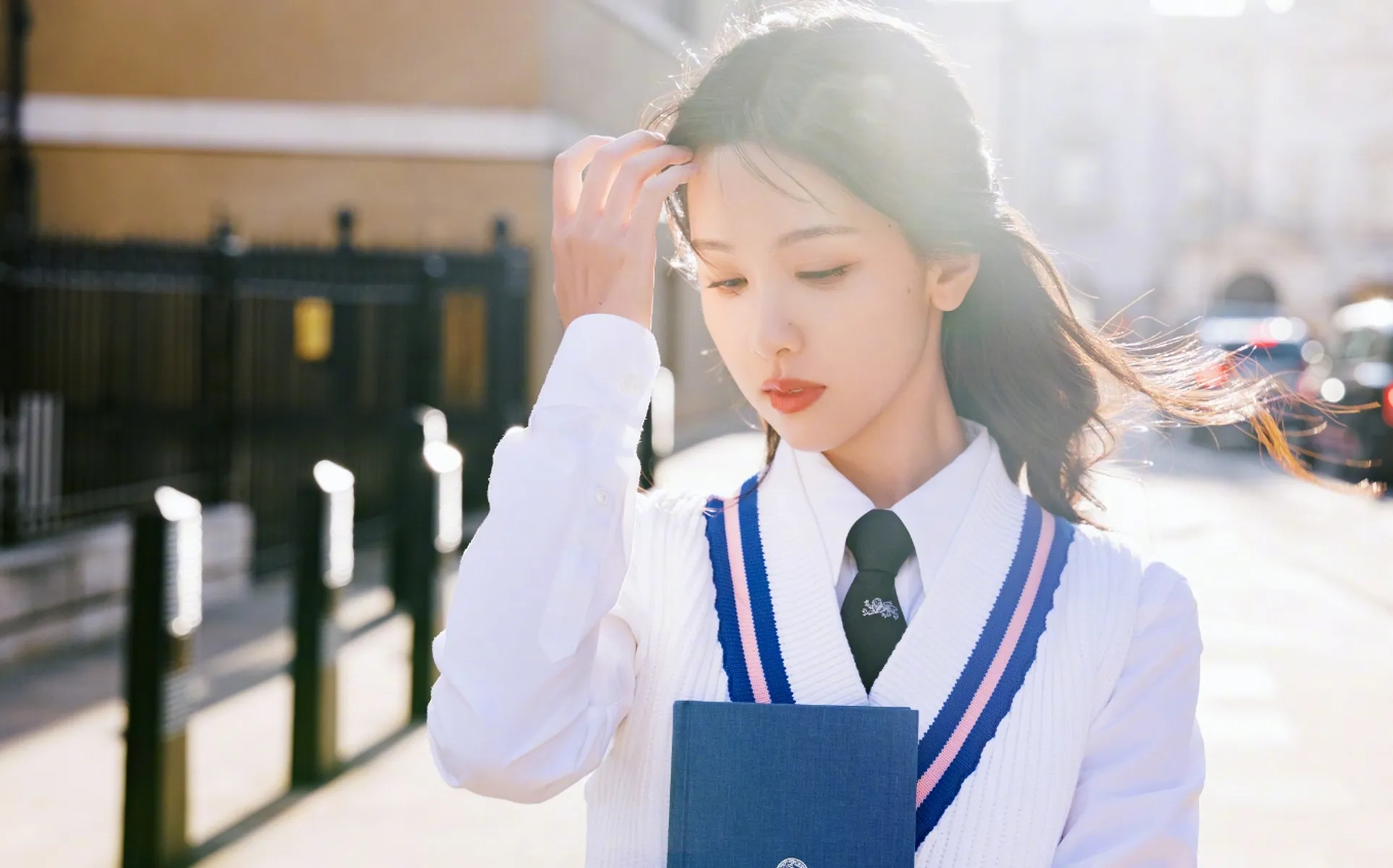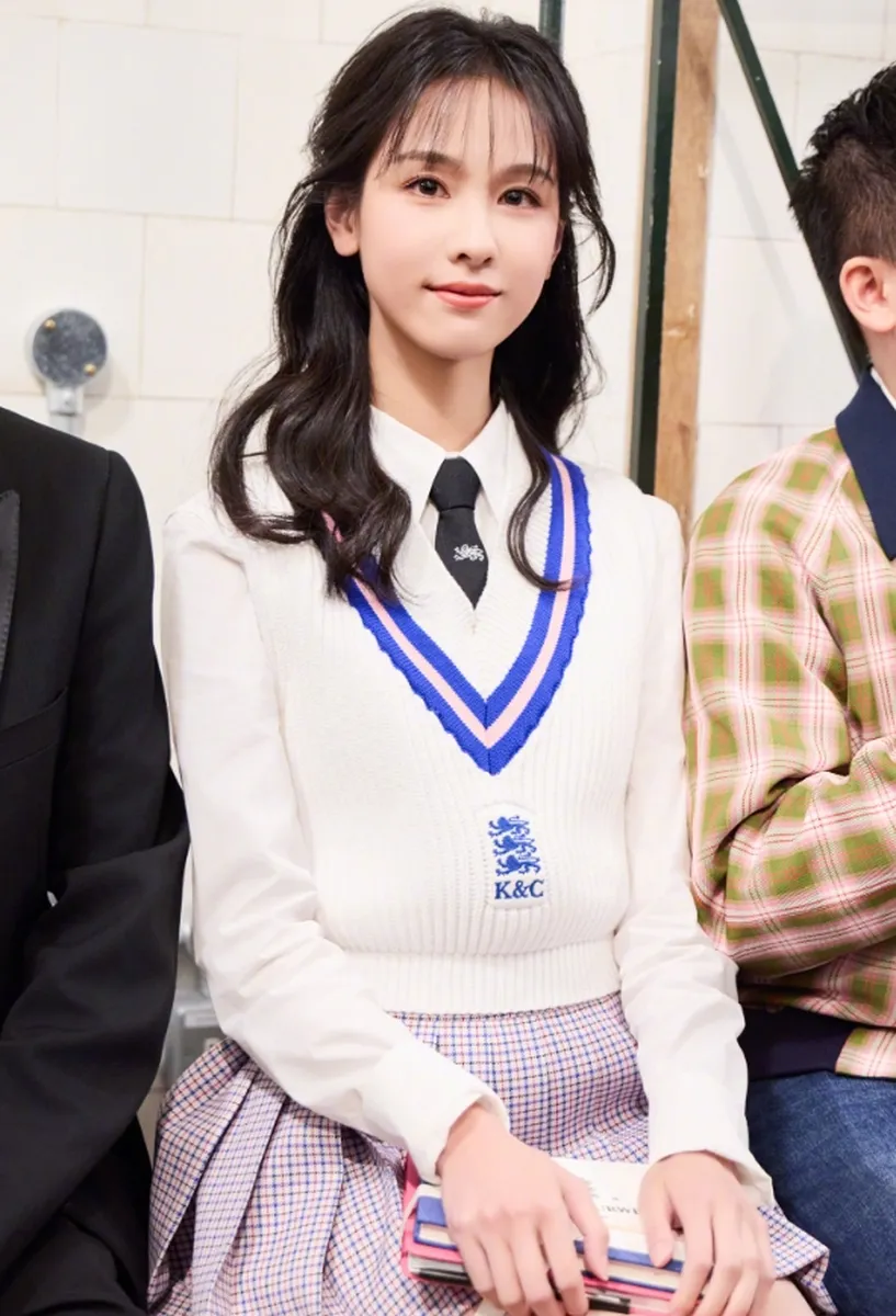 陈都灵晒时装周造型图 学院风穿搭梦回南航校花!
