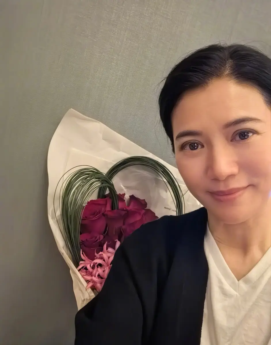 袁咏仪收到老公送的鲜花很惊喜,笑容满面,心情大好。