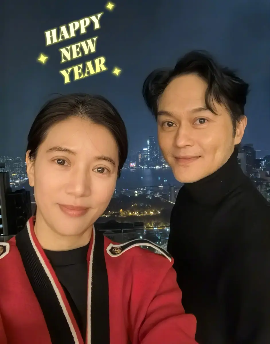 夫妻俩一起合影好恩爱。