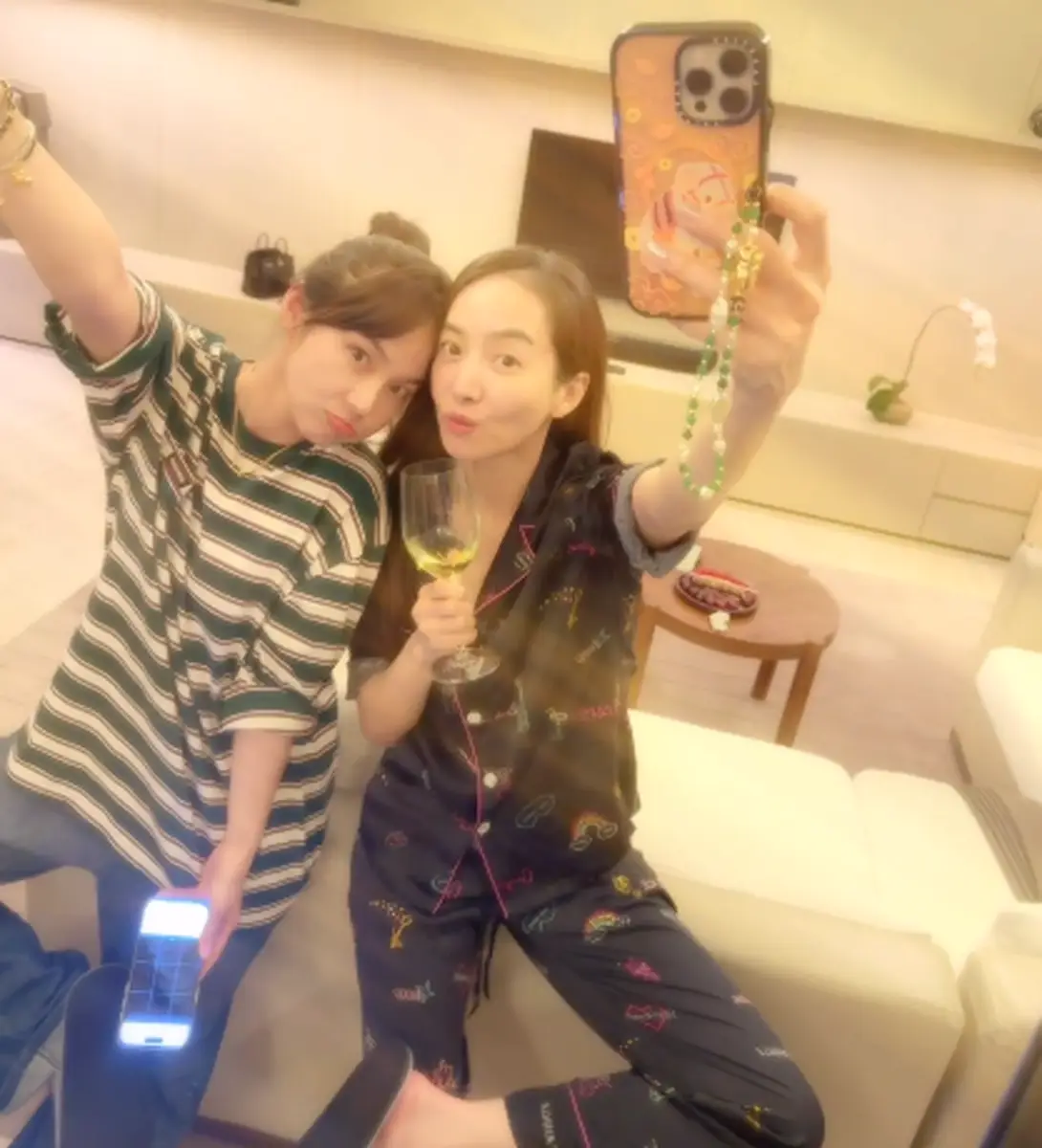 的合照,俩人对镜自拍,嘟嘴卖萌超可爱。