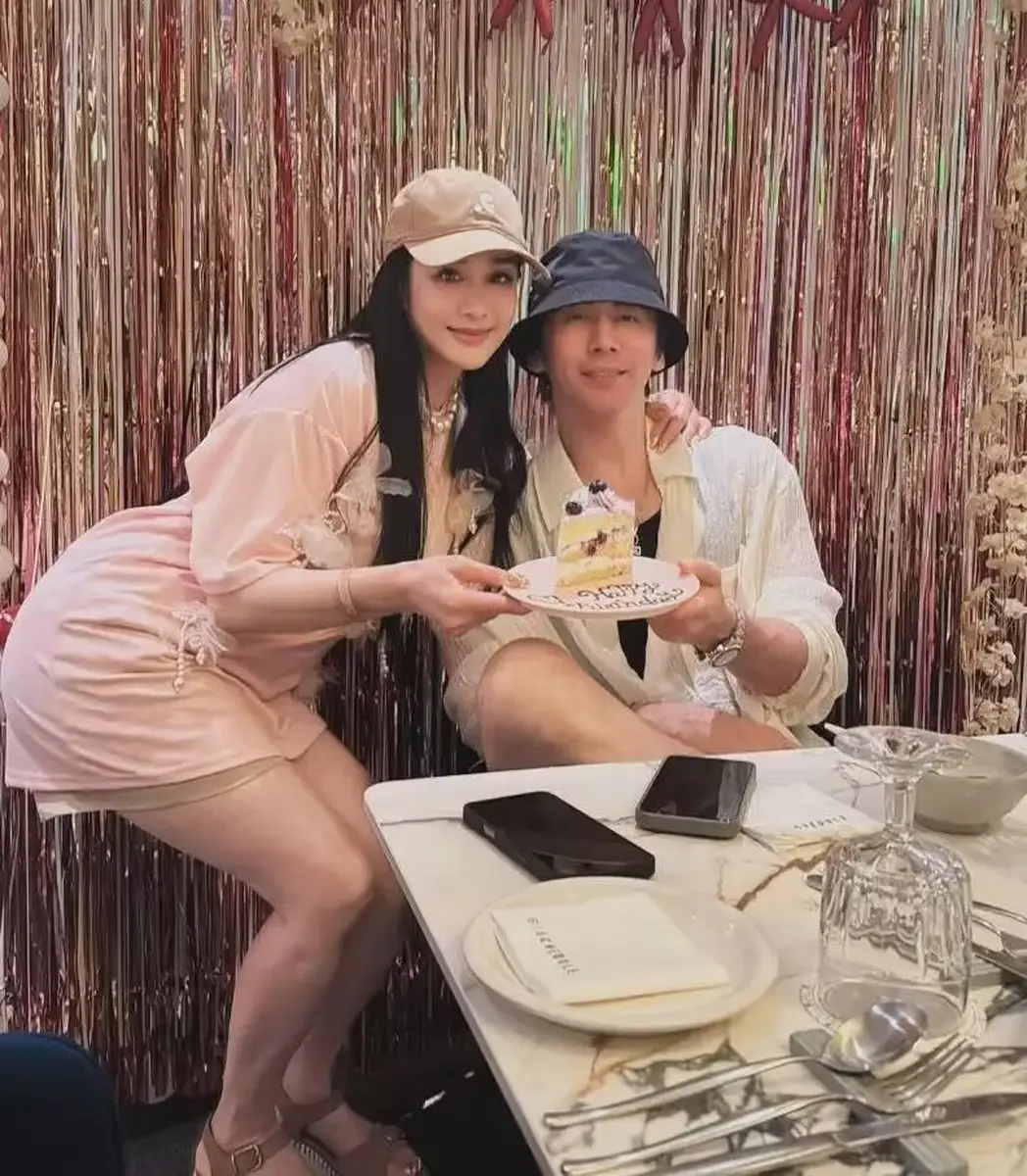 庆生大撒狗粮,亲吻合影恩爱十足。