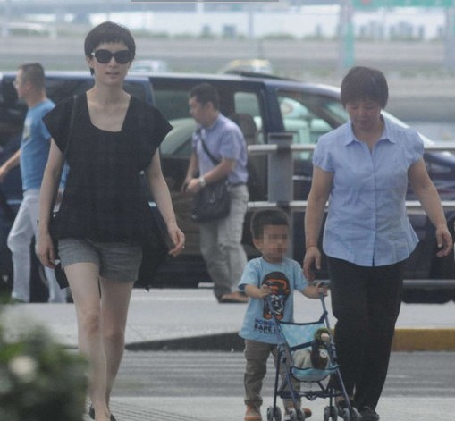 孙俪穿热裤携子现身 儿子推婴儿车显乖巧