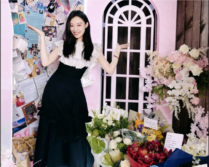 倪妮晒36岁庆生照 打卡生日花墙笑眼弯弯