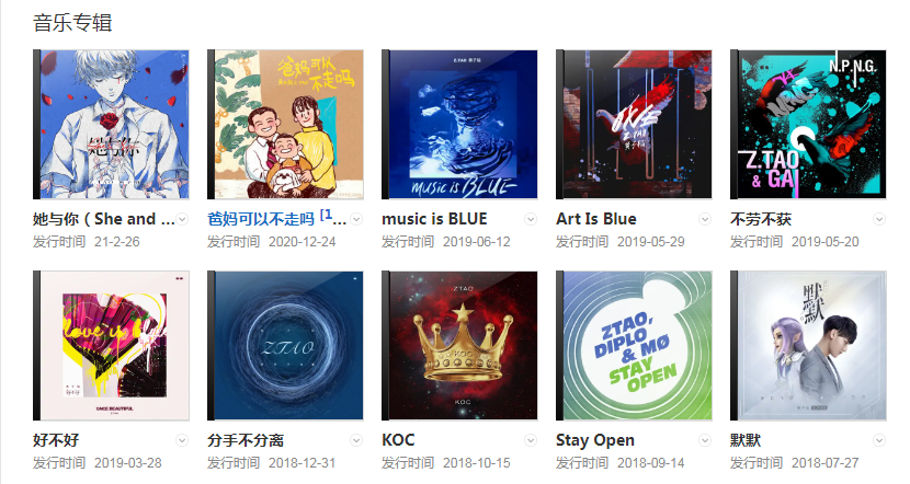 代表作品:T.A.O、The Road、夜空中最闪亮的星、谈判官、真正男子汉第二季、小小的追球、热血同行、创造101、说唱新世代、创造营2020