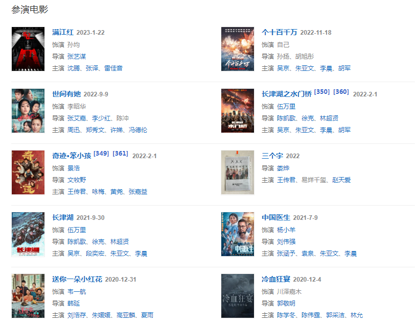 代表作品:少年的你、送你一朵小红花、长津湖、奇迹·笨小孩、长安十二时辰、这!就是街舞、温差感、我乐意沉默释放内心焰火、后座剧场