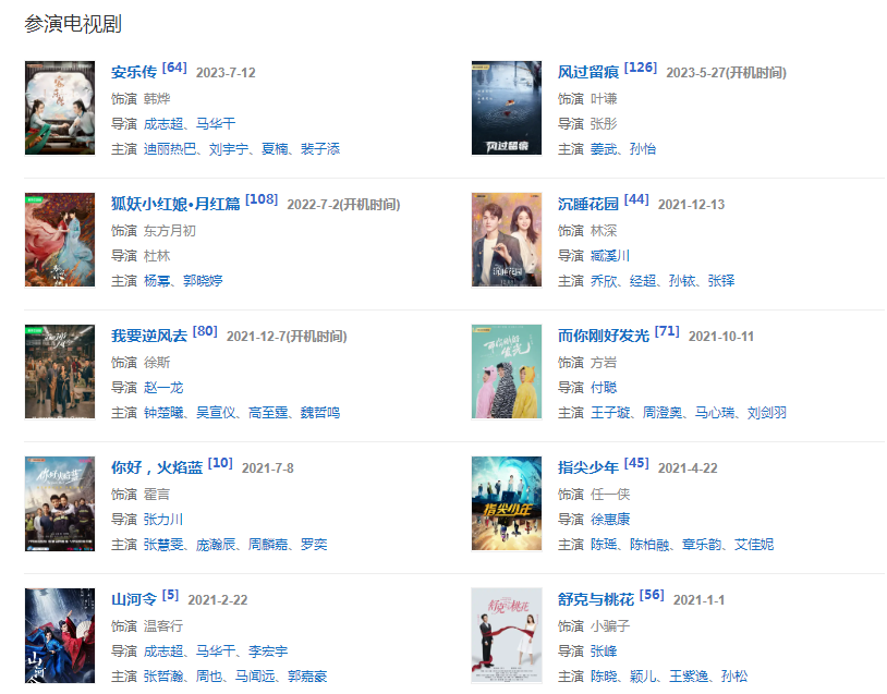 代表作品:山河令、沉睡花园、你好,火焰蓝、致我们甜甜的小美满