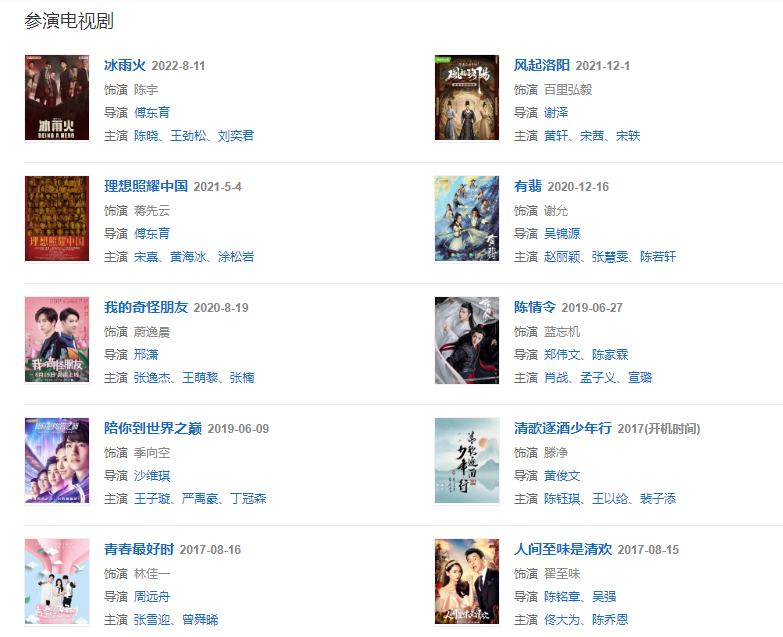 代表作品:有翡、陪你到世界之巅、无感、我的世界守则、陈情令、风起洛阳、人间至味是清欢