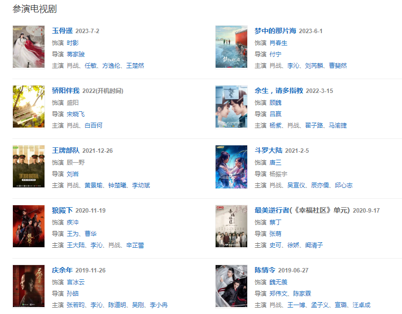 2019年6月27日,古装仙侠剧《陈情令》在腾讯视频播出,肖战凭魏无羡一角赢得广泛关注;9月13日,主演的古装仙侠电影《诛仙I》在全国上映。