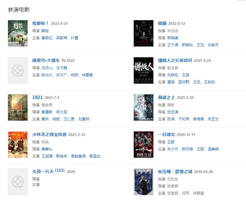 2020年,参演建党100周年重大革命历史题材献礼剧《光荣与梦想》。