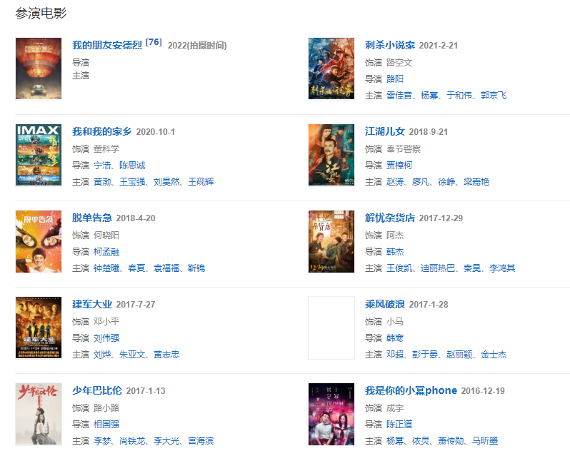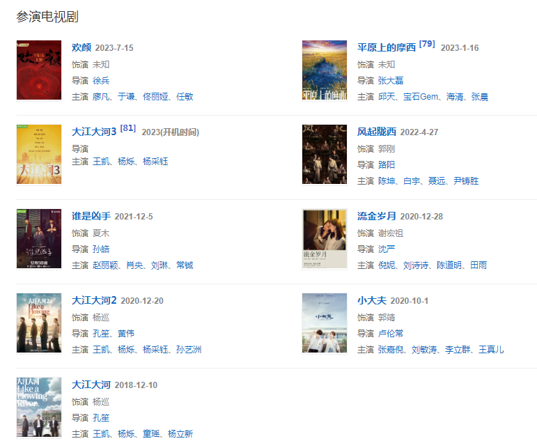 代表作品:青春派、山河故人、大江大河、六弄咖啡馆、少年班、乘风破浪、流金岁月、恰好是少年