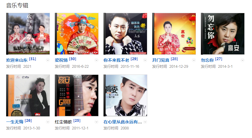 代表作品:红尘情歌、在心里从此永远有个你、一生无悔、花桥流水、你不来我不老、我是否也在你心中、欢迎来山东